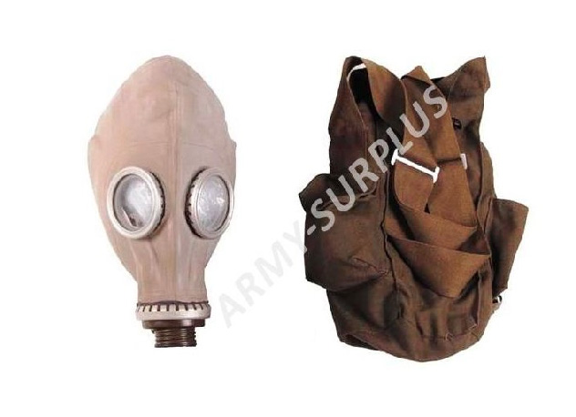 DetailČeská plynová maska s filtrem, popruhem pro zavěšení a hovorovou membránovou.